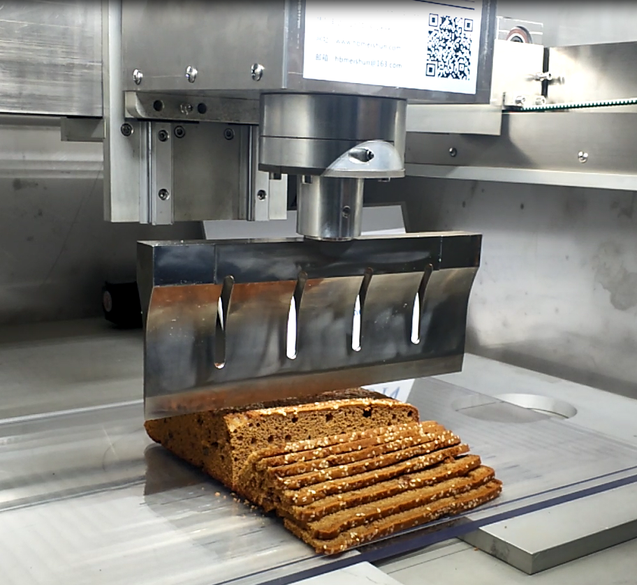 Ultrasonic cutting machine uses high-frequency vibration to carry out cutting work. The equipment realizes friction-free and pressure-free cutting mode. Meishun Machinery can provide a complete set of cutting solutions for bakeries of any size, and can customize each machine according to customer needs.