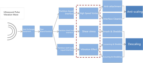 The ultrasonic descaling and anti-scaling equipment is mainly composed of an ultrasonic generator, an ultrasonic signal transmission cable, an ultrasonic energy converter and the pipeline which assembled with an ultrasonic transducer. According to the installation mode, it can be divided into three types: external type, embedded type and built-in type.