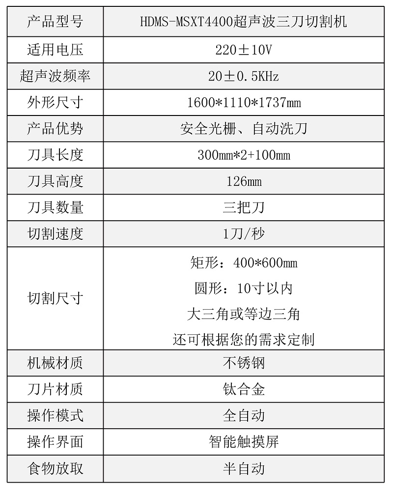 該設(shè)備配備雙把超聲波刀片,既可切方蛋糕,也可同時切兩個圓蛋糕,還具有自動上水洗刀、安全光柵的人性化功能,效率高,更方便